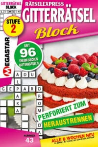 Im „Rätselexpress – Gitterrätsel Block“ warten über 90 Gitterrätsel zu den verschiedensten Themen darauf, gelöst zu werden. Ob Lifestyle, Sport oder Kulinarisches, für Abwechslung ist gesorgt. Jetzt heißt es, alle Wörter an die richtigen Stellen in die Gitter zu setzen und somit die Rätsel zu lösen.
